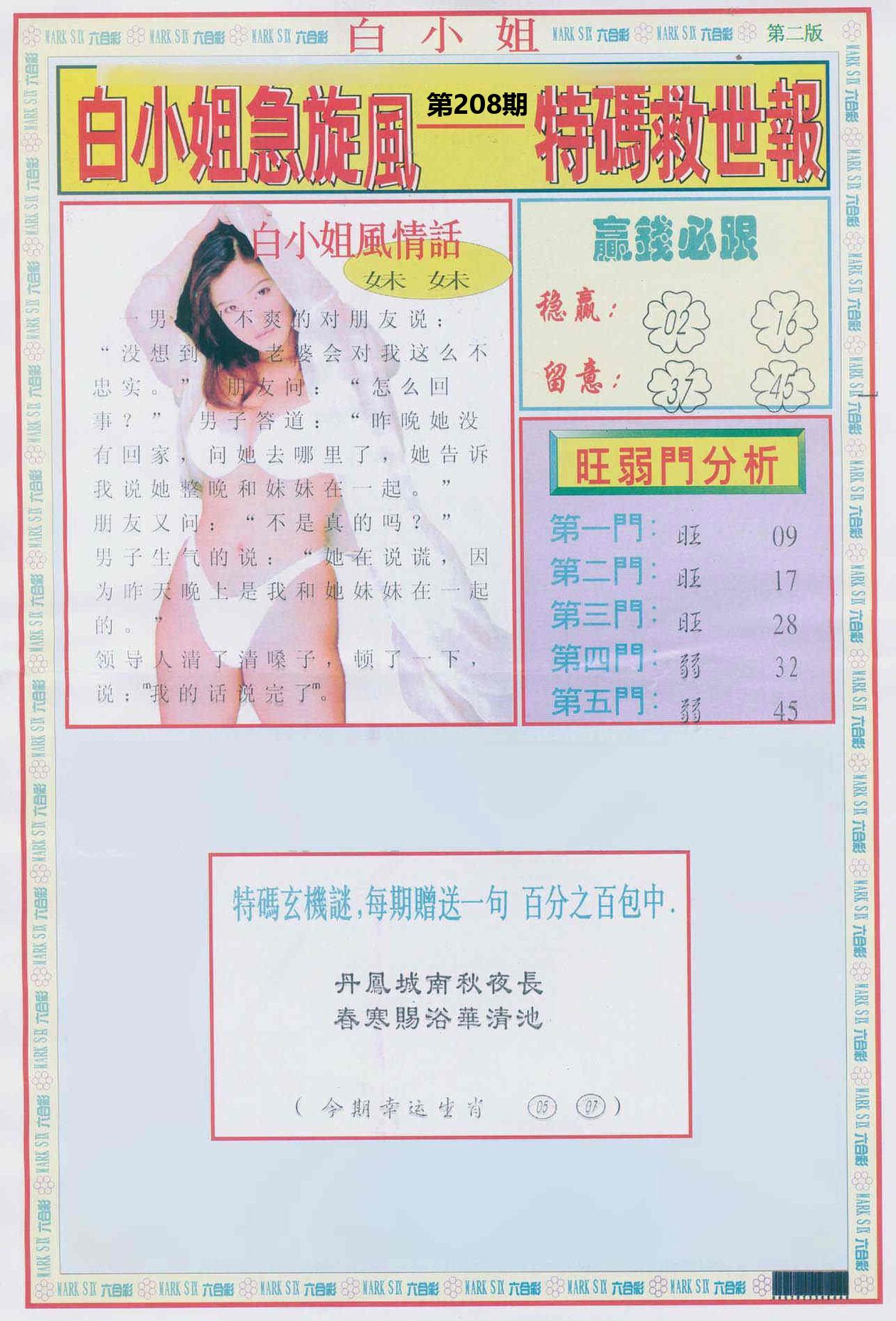 新香港六合彩 第 2025208 期 開獎結果