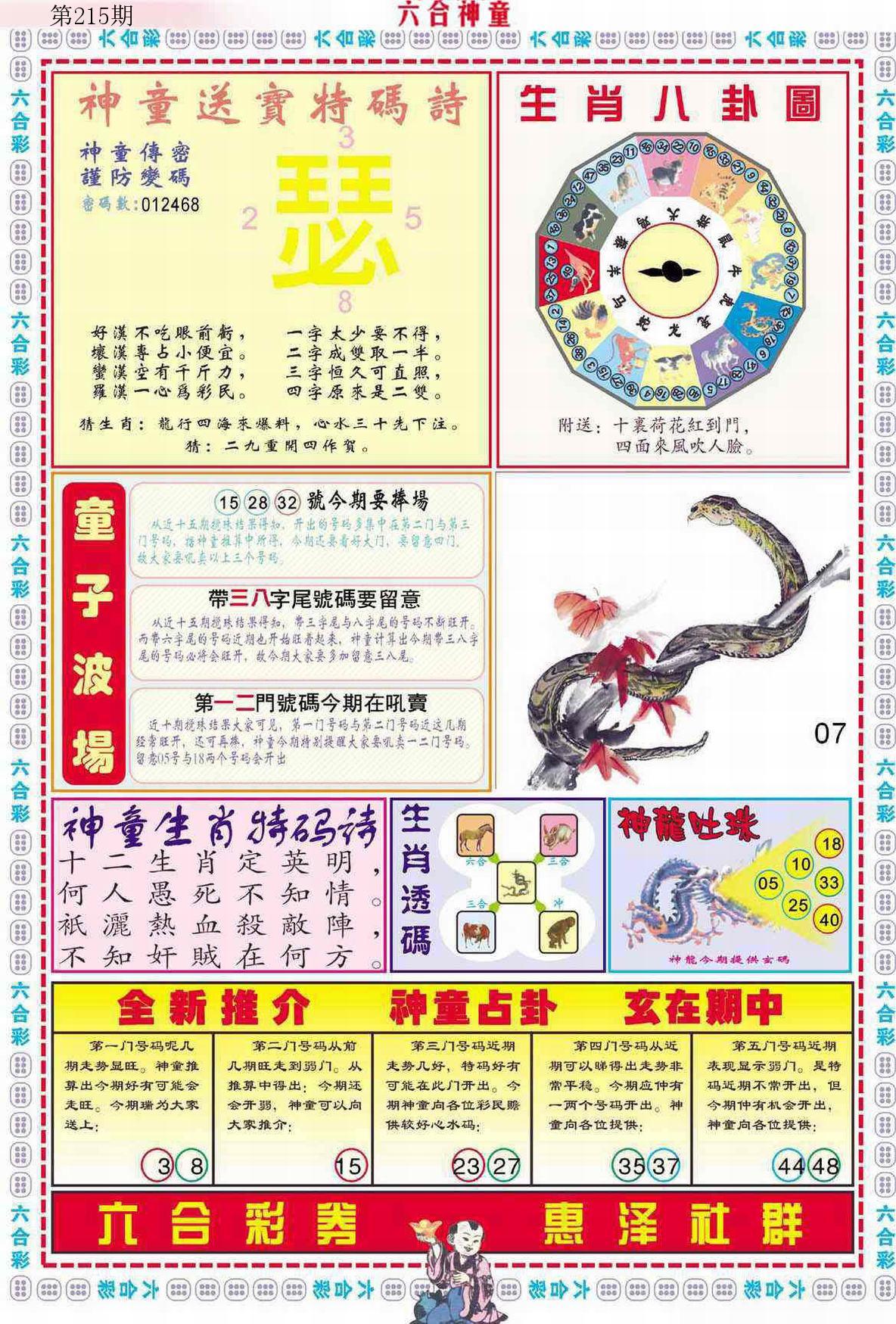 新香港六合彩 第 2025215 期 開獎結果