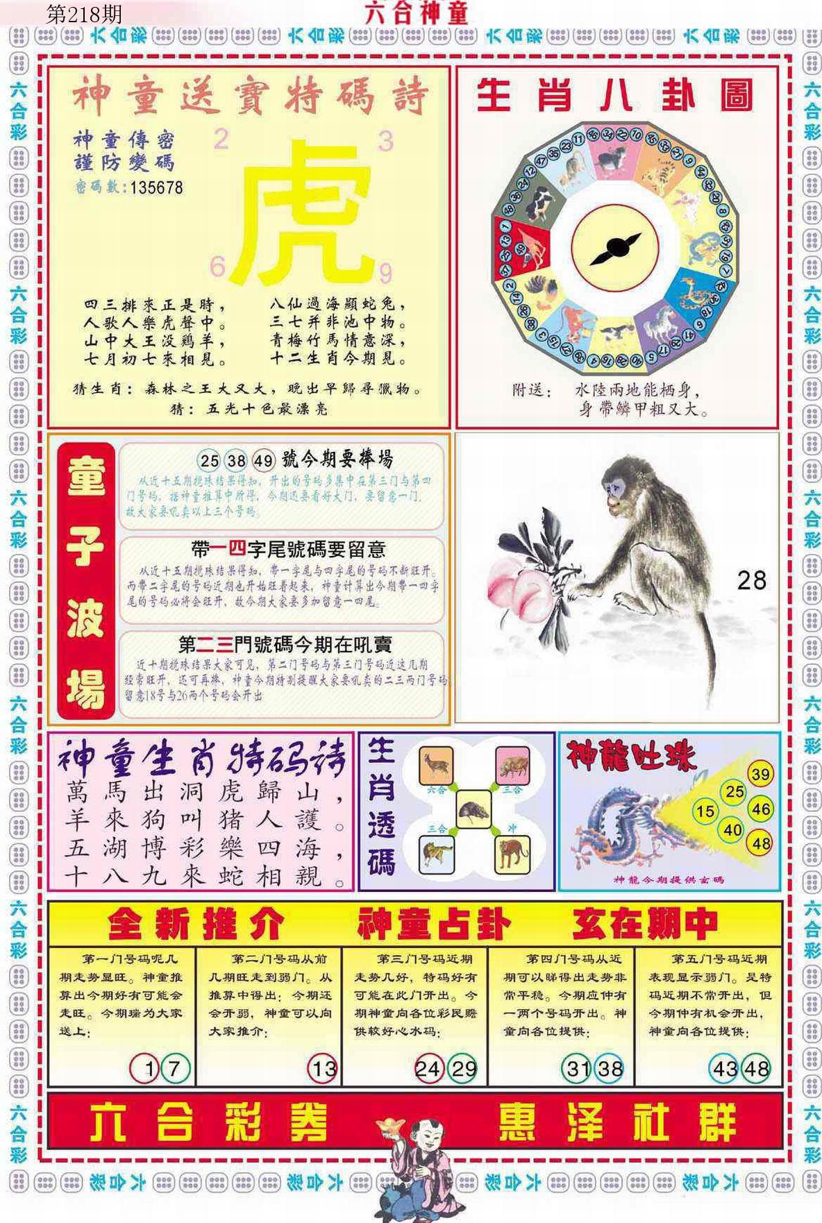 新香港六合彩 第 2025218 期 開獎結果