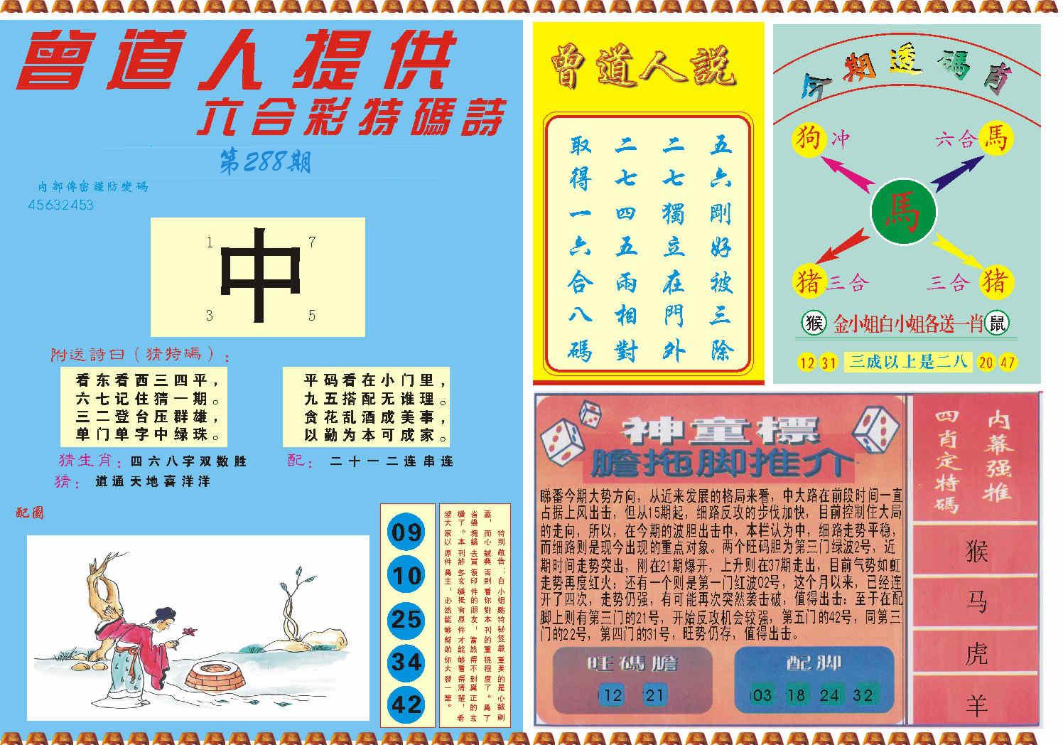 新香港六合彩 第 2025288 期 開獎結果