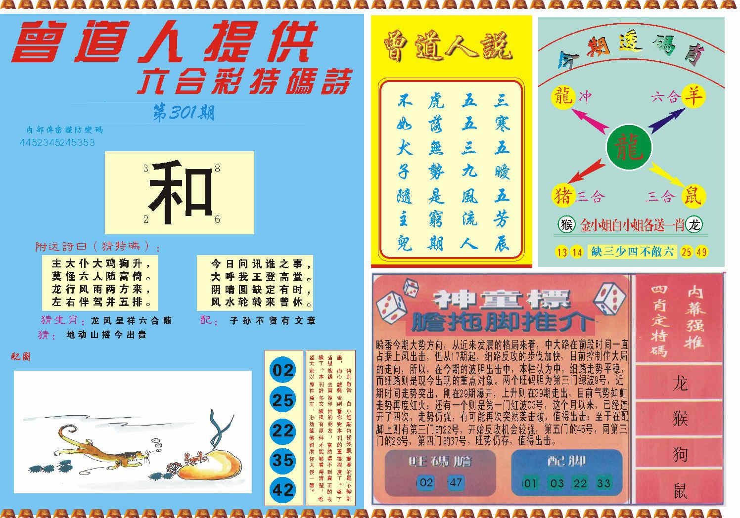 新香港六合彩 第 2025301 期 開獎結果