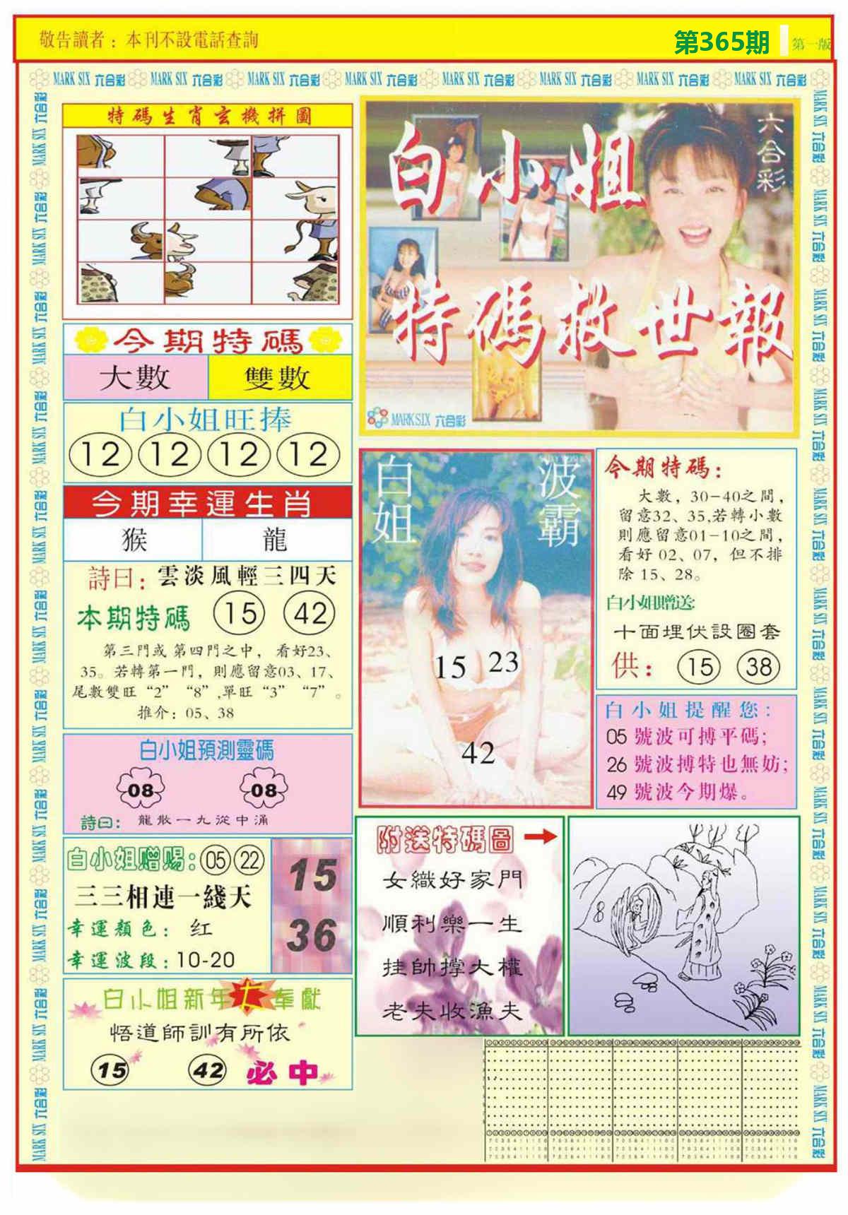 新香港六合彩 第 2025365 期 開獎結果