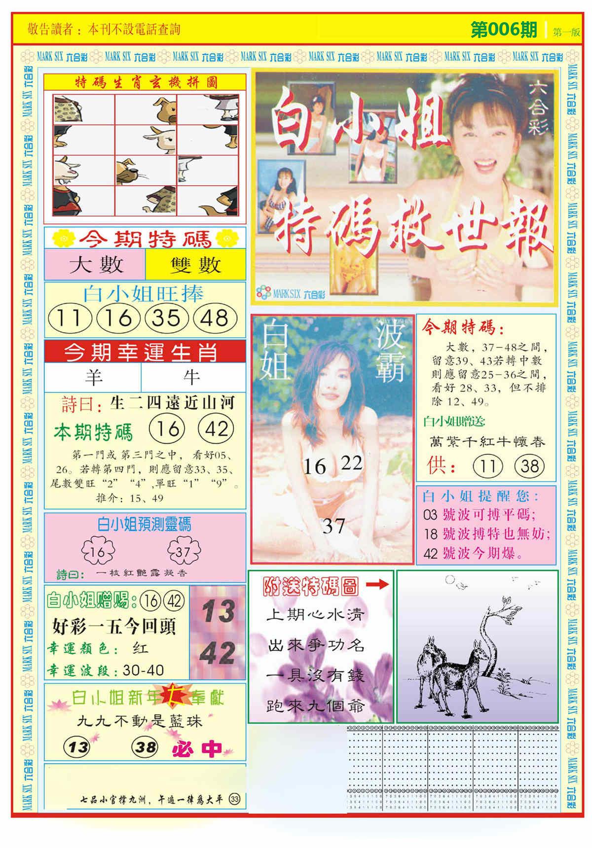 新香港六合彩 第 2026006 期 開獎結果