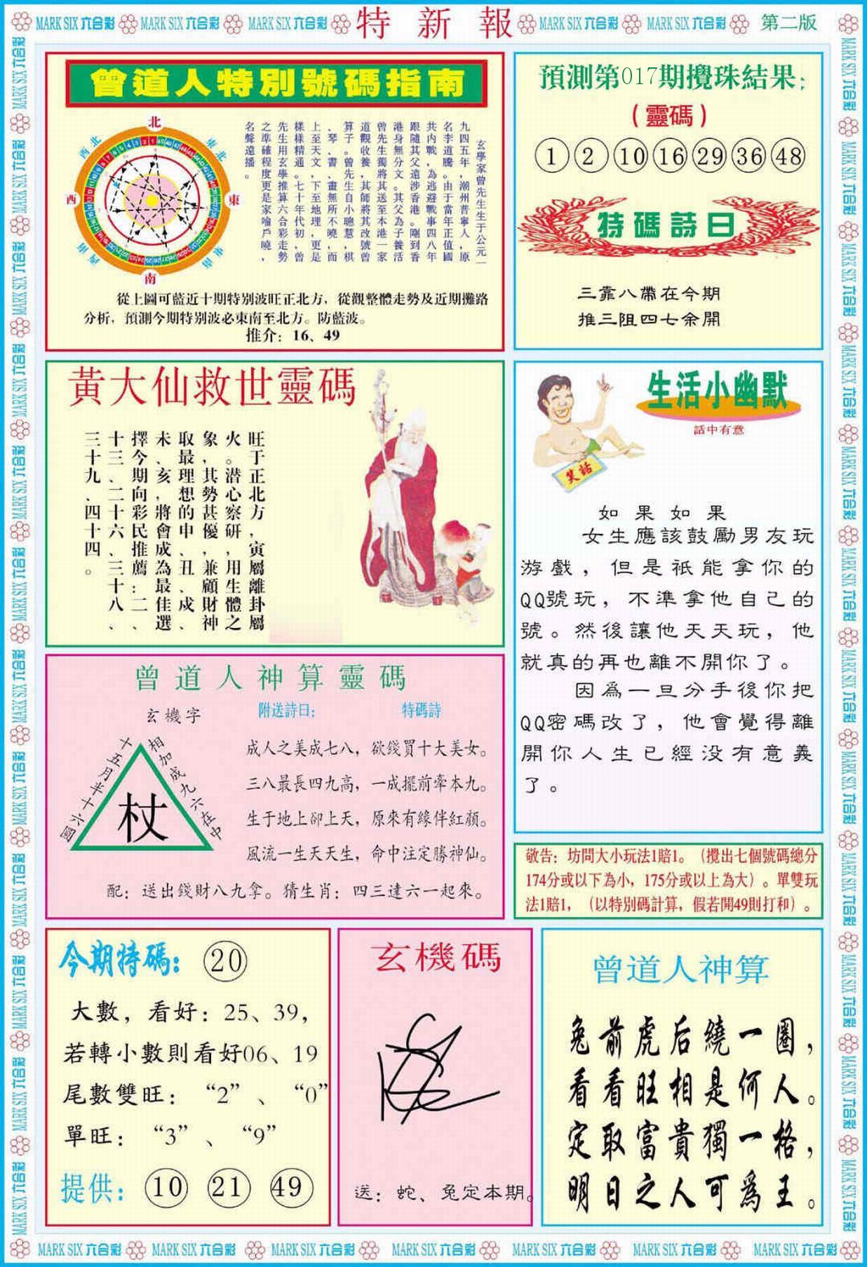 新香港六合彩 第 2026017 期 開獎結果