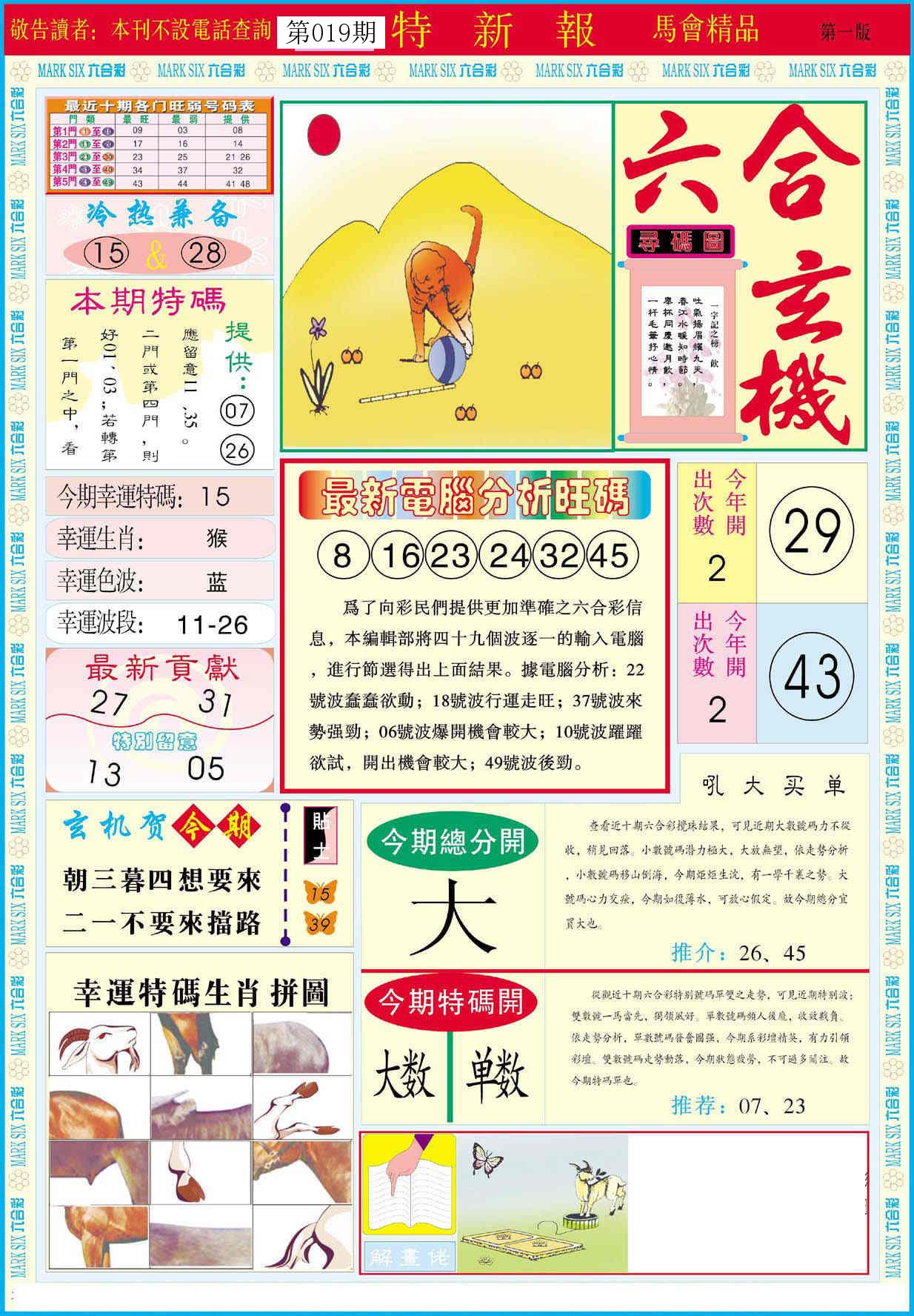 新香港六合彩 第 2026019 期 開獎結果