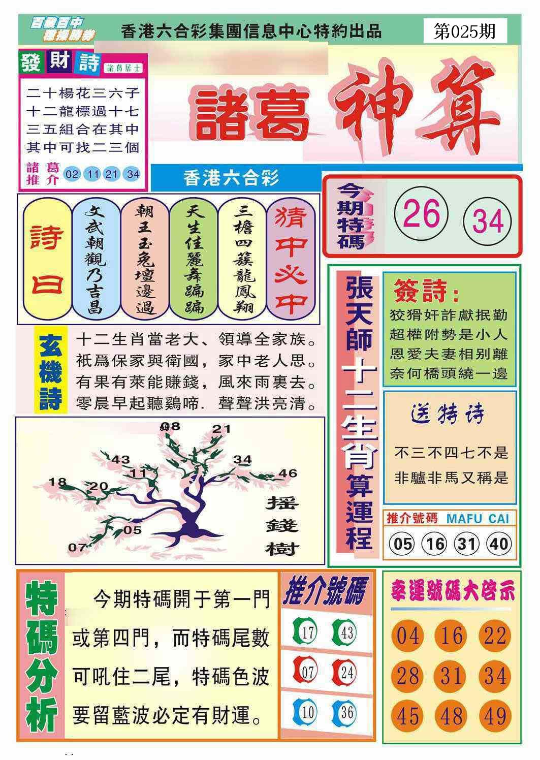 新香港六合彩 第 2026025 期 開獎結果