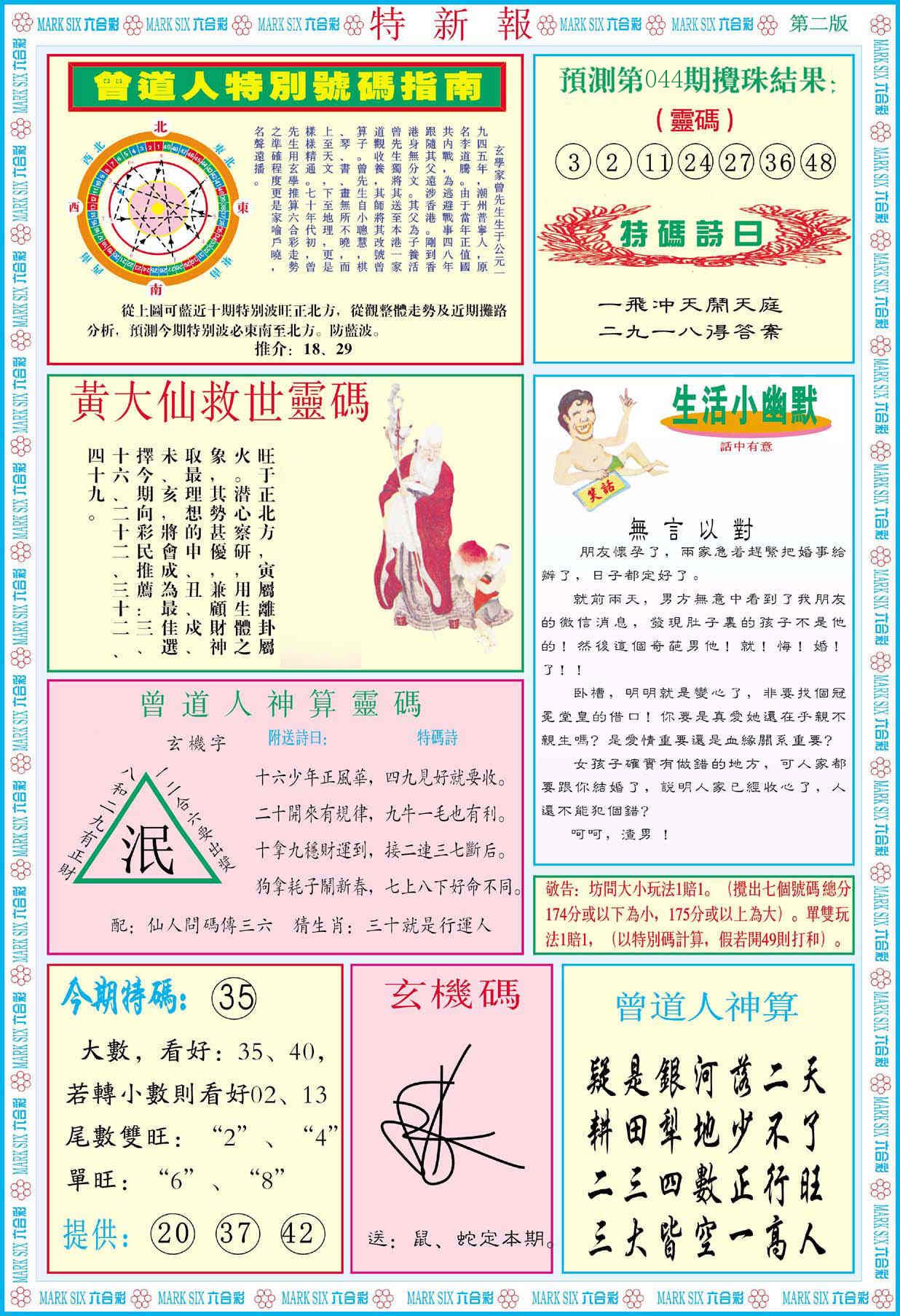 新香港六合彩 第 2026044 期 開獎結果