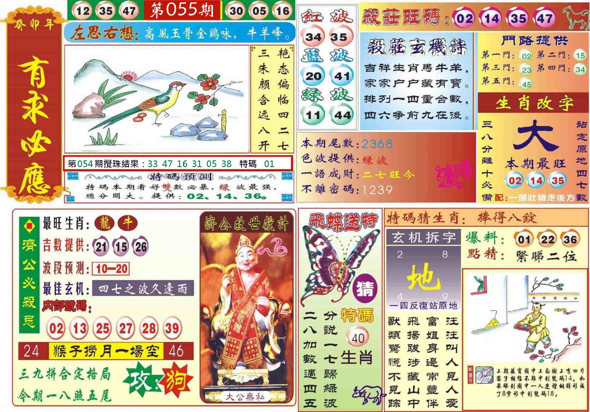 新香港六合彩 第 2026055 期 開獎結果