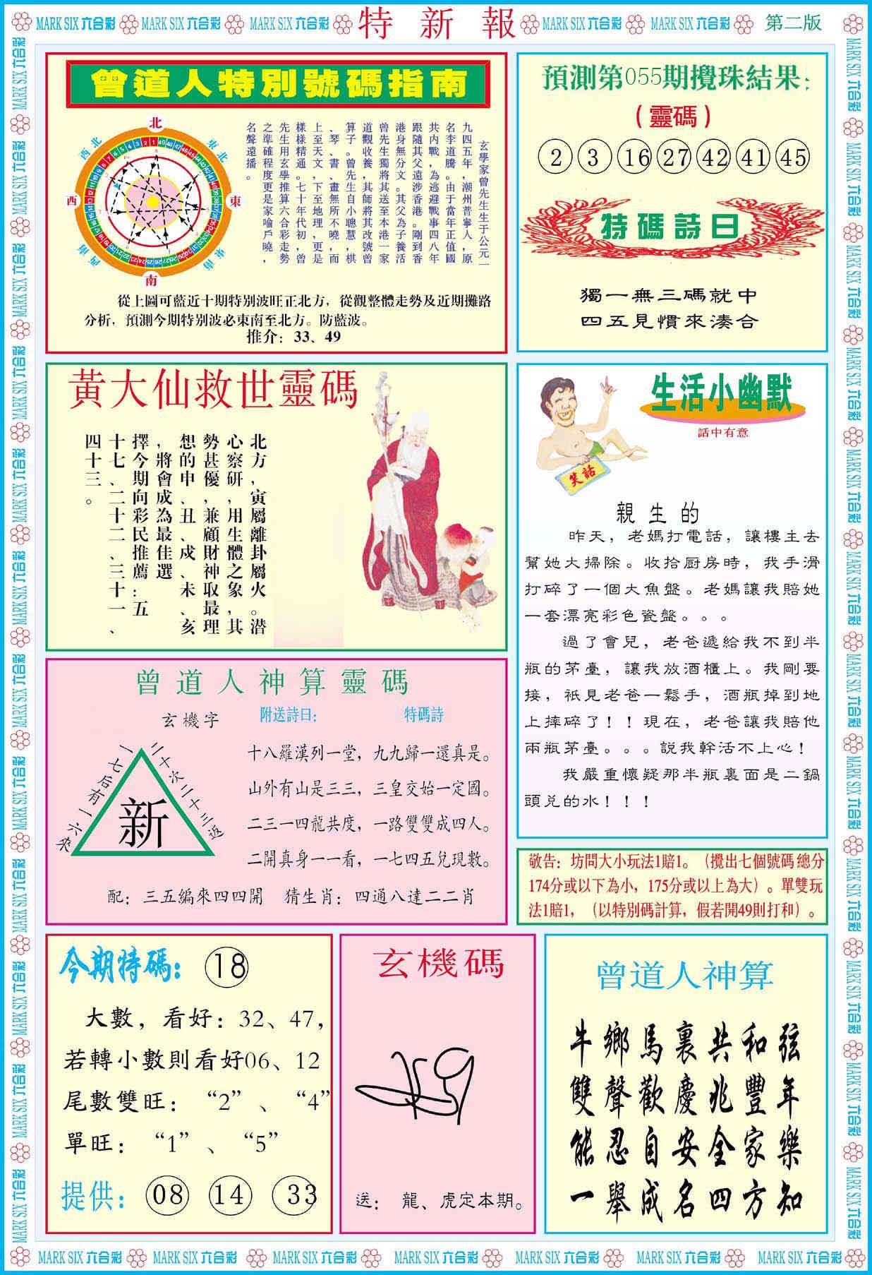 新香港六合彩 第 2026055 期 開獎結果