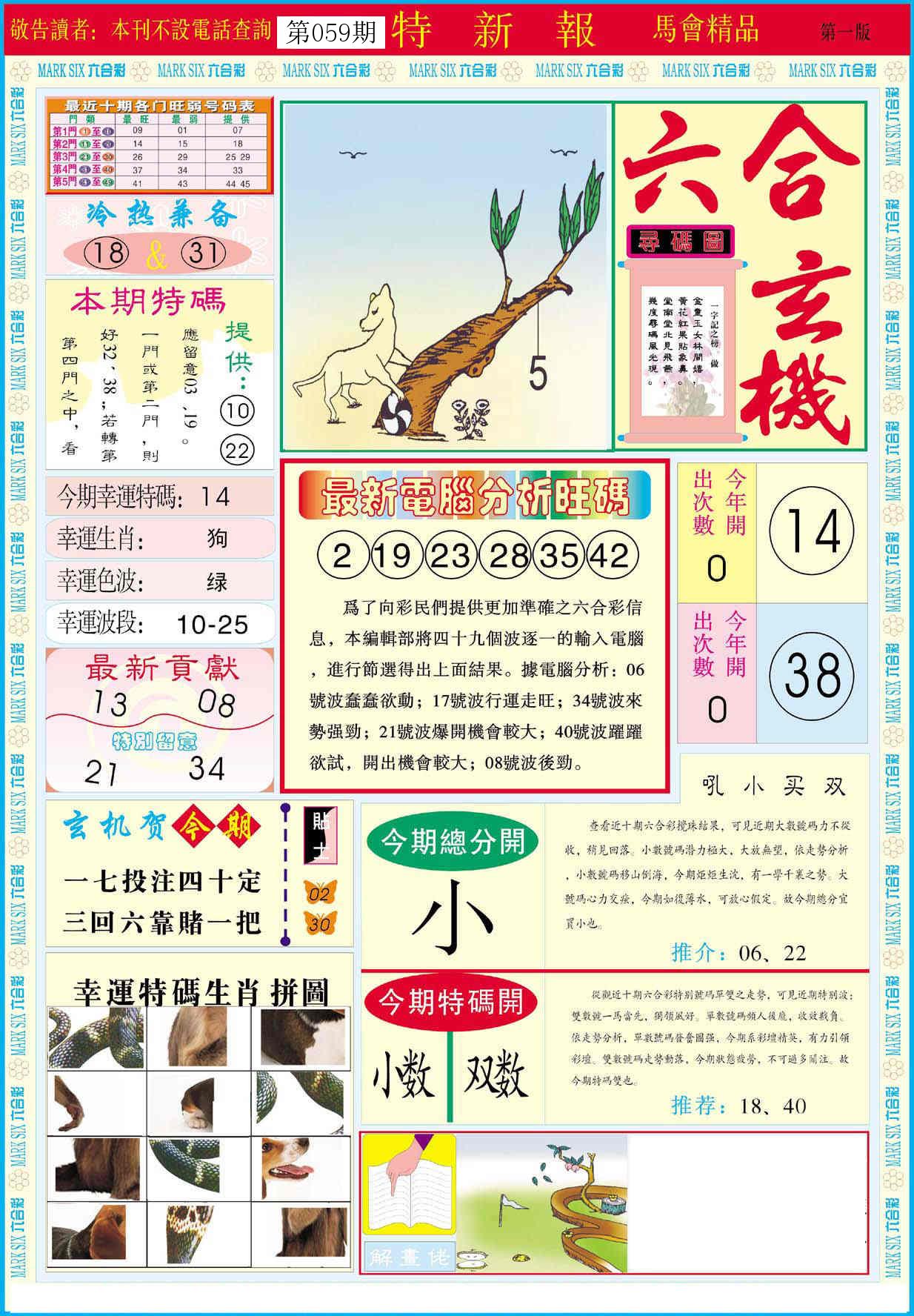 新香港六合彩 第 2026059 期 開獎結果