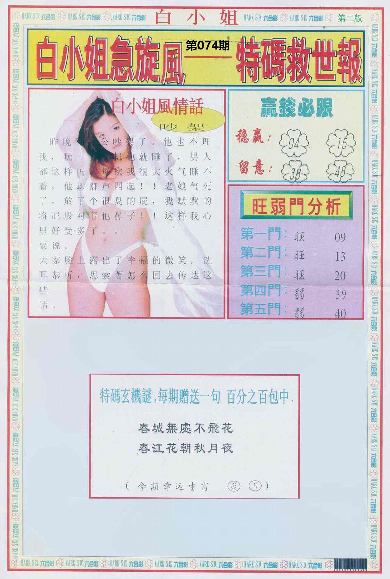 新香港六合彩 第 2026074 期 開獎結果