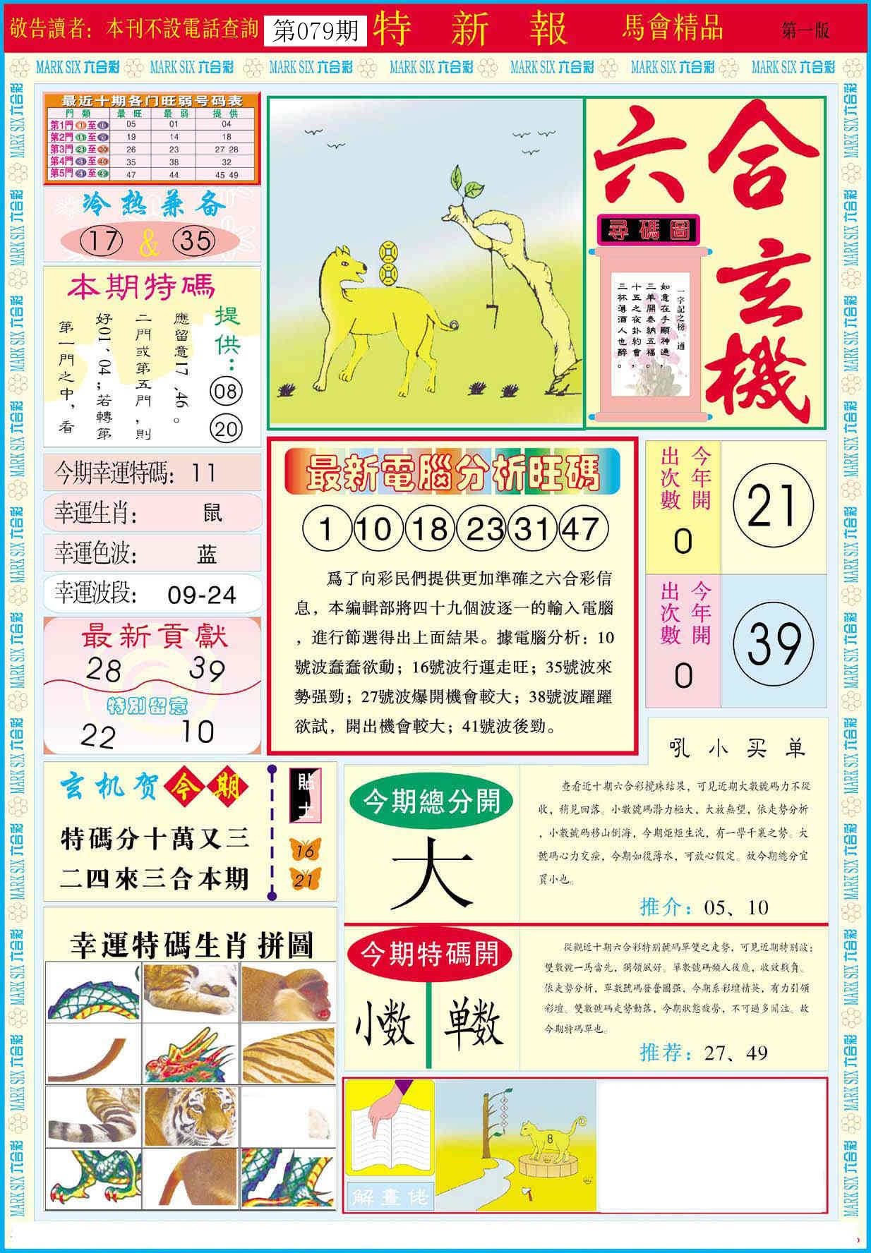 新香港六合彩 第 2026079 期 開獎結果