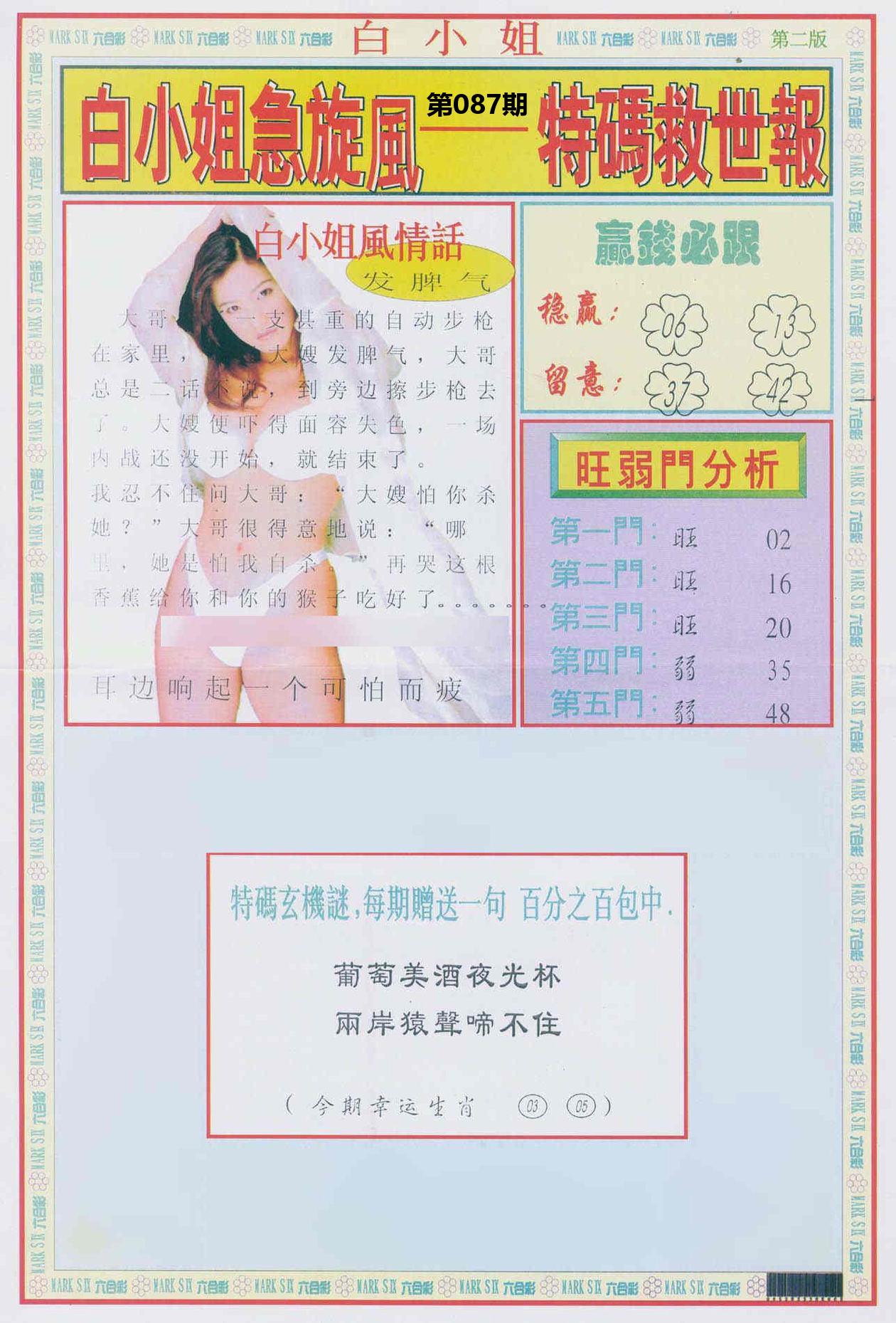 新香港六合彩 第 2026087 期 開獎結果