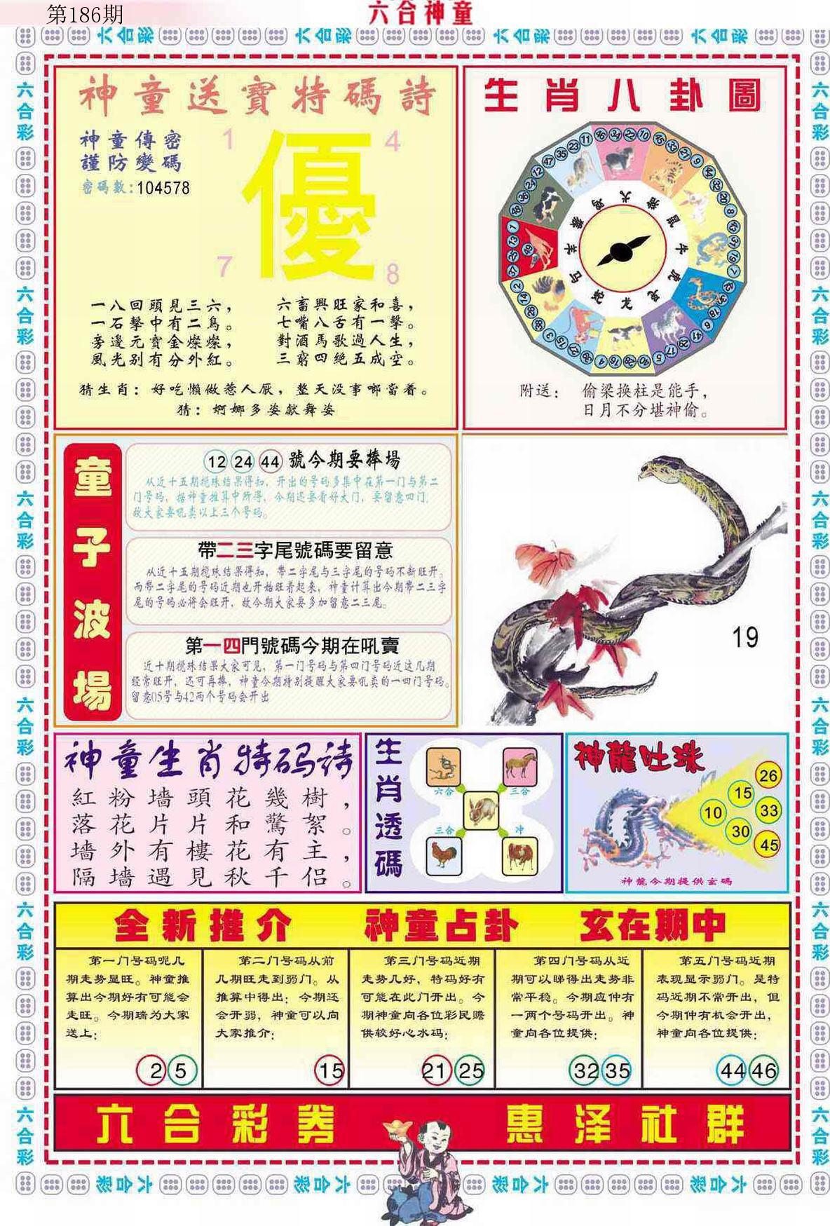 新香港六合彩 第 2025186 期 開獎結果