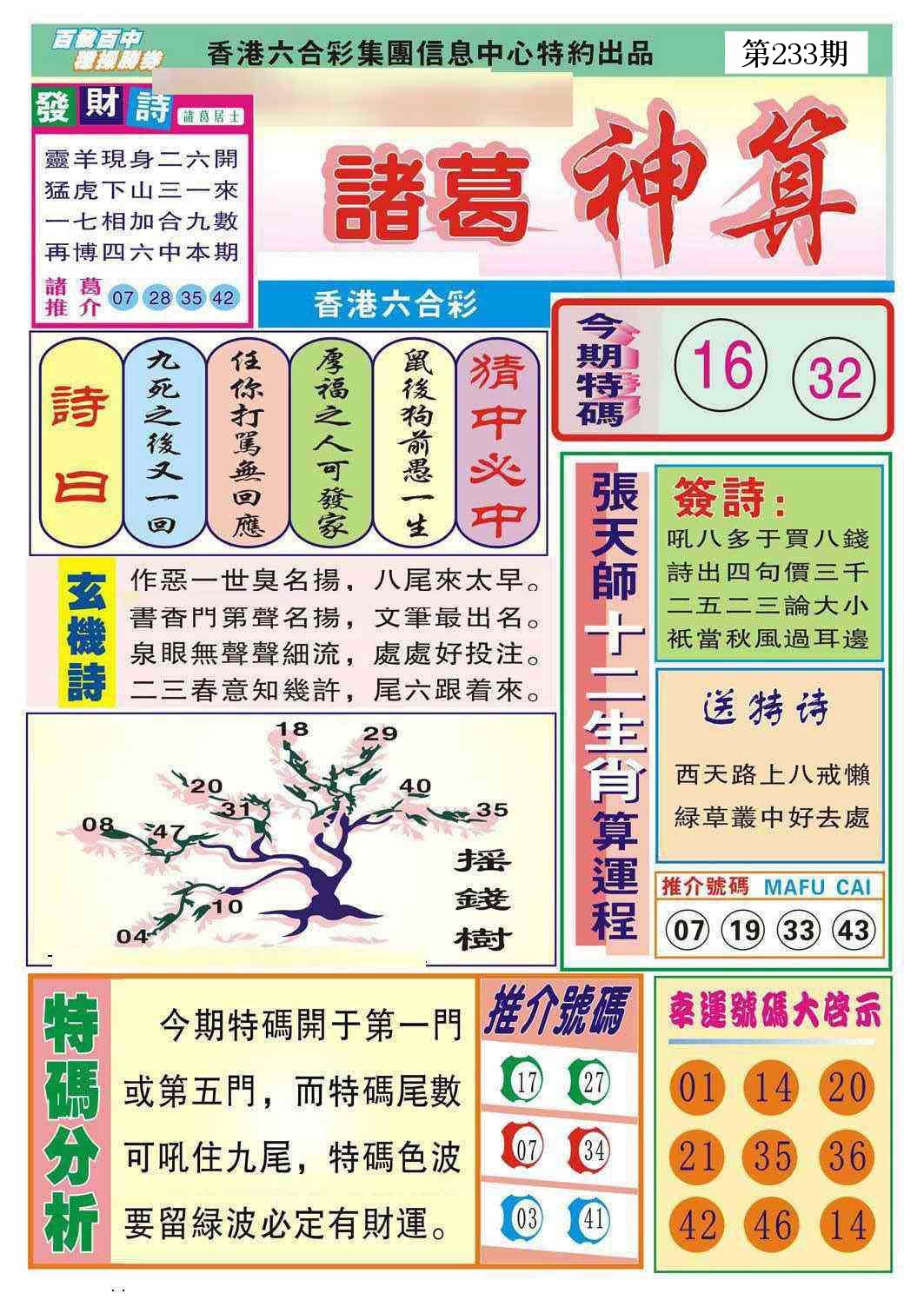 新香港六合彩 第 2025233 期 開獎結果