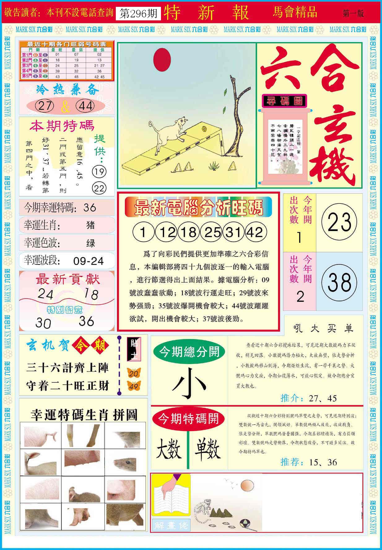 新香港六合彩 第 2025296 期 開獎結果