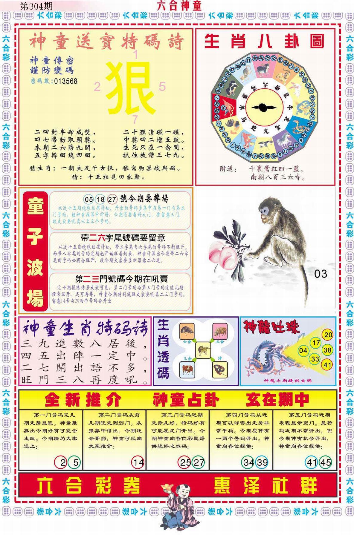新香港六合彩 第 2025304 期 開獎結果