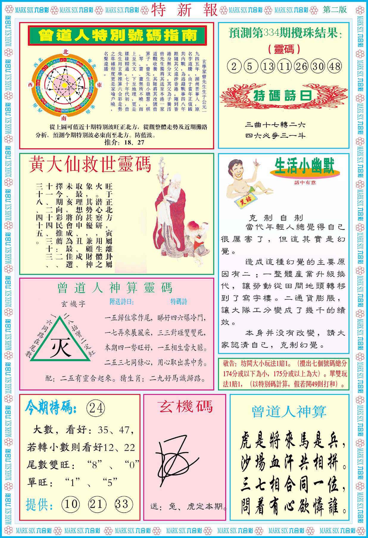 新香港六合彩 第 2025334 期 開獎結果