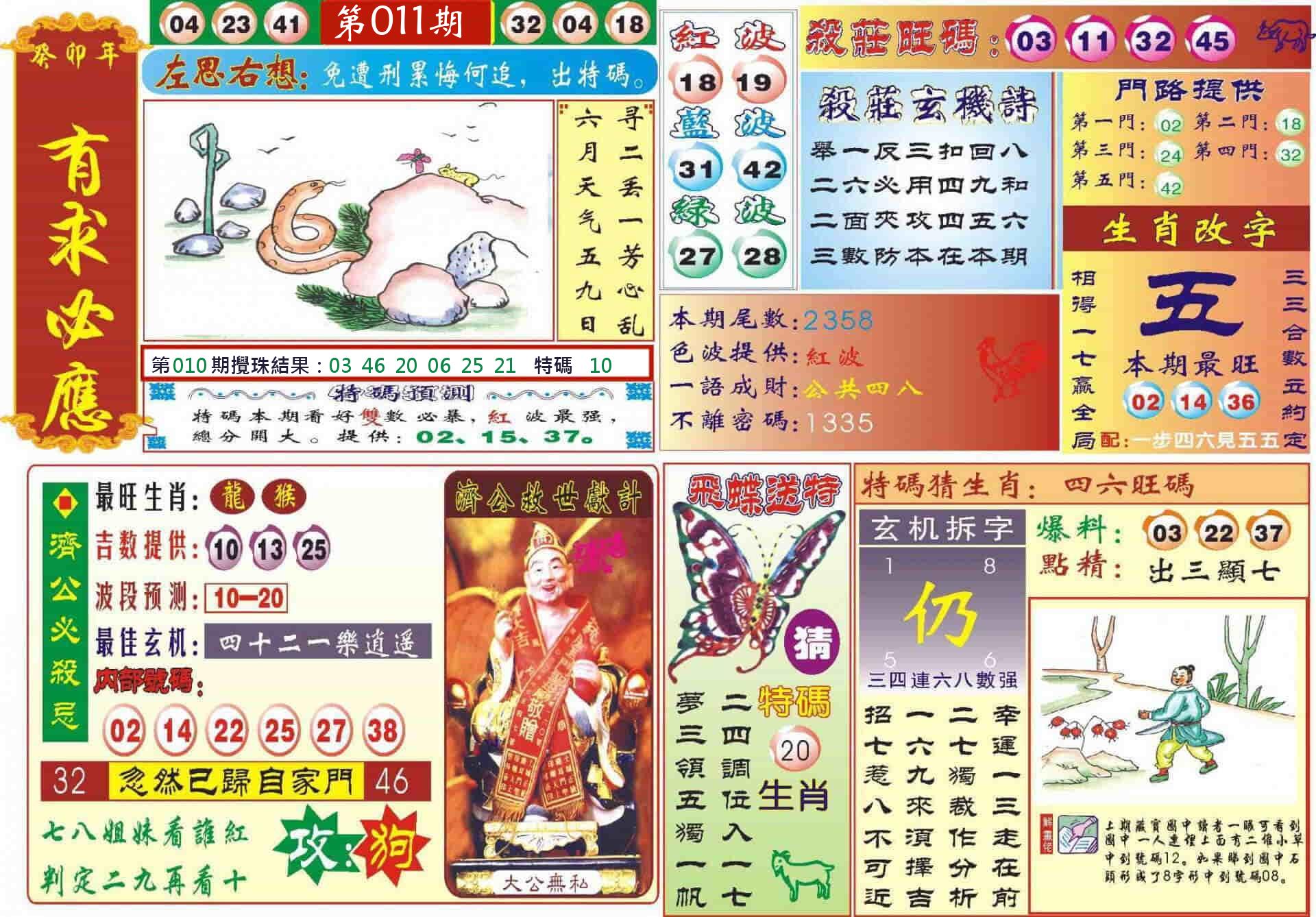 新香港六合彩 第 2026011 期 開獎結果