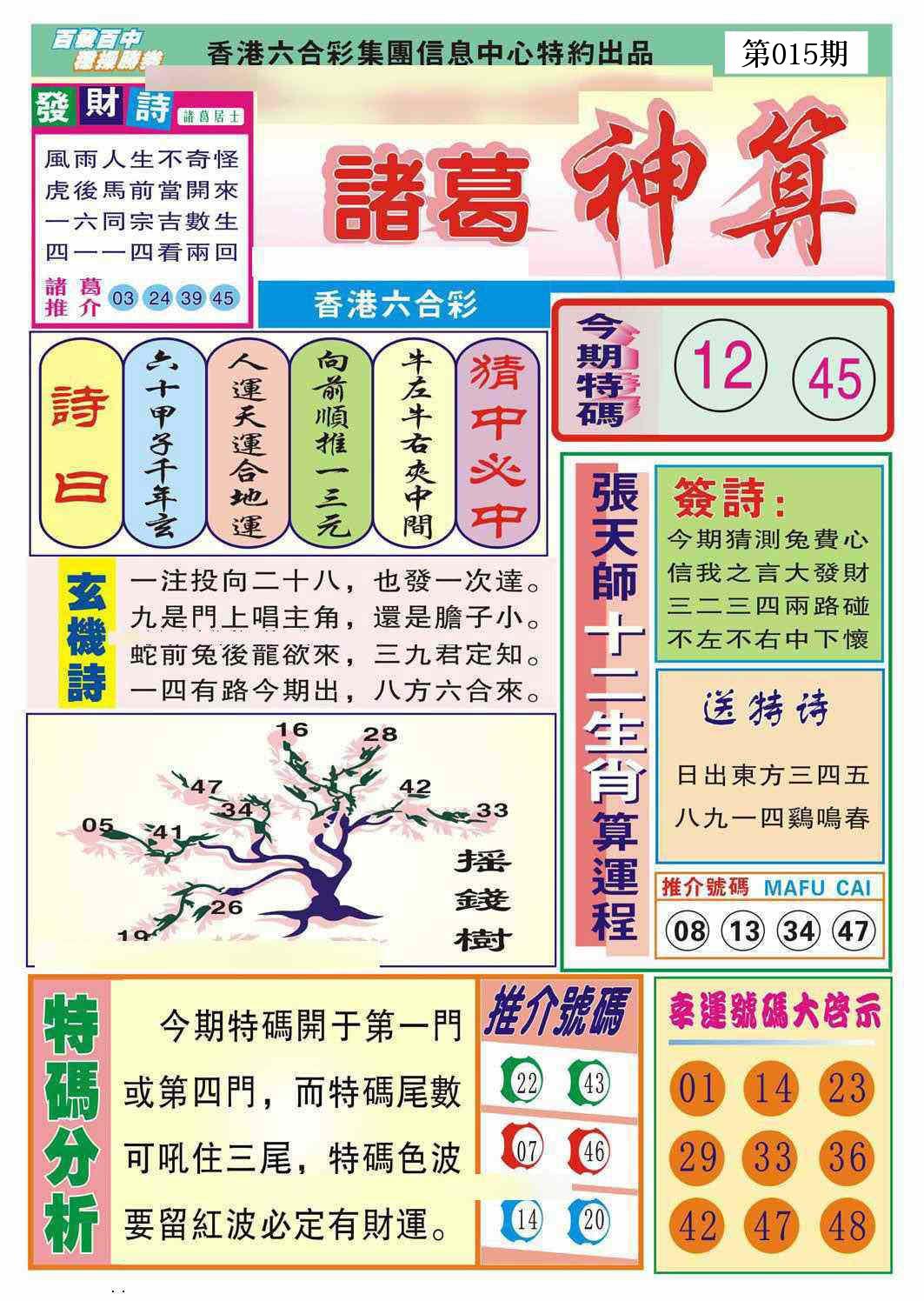 新香港六合彩 第 2026015 期 開獎結果