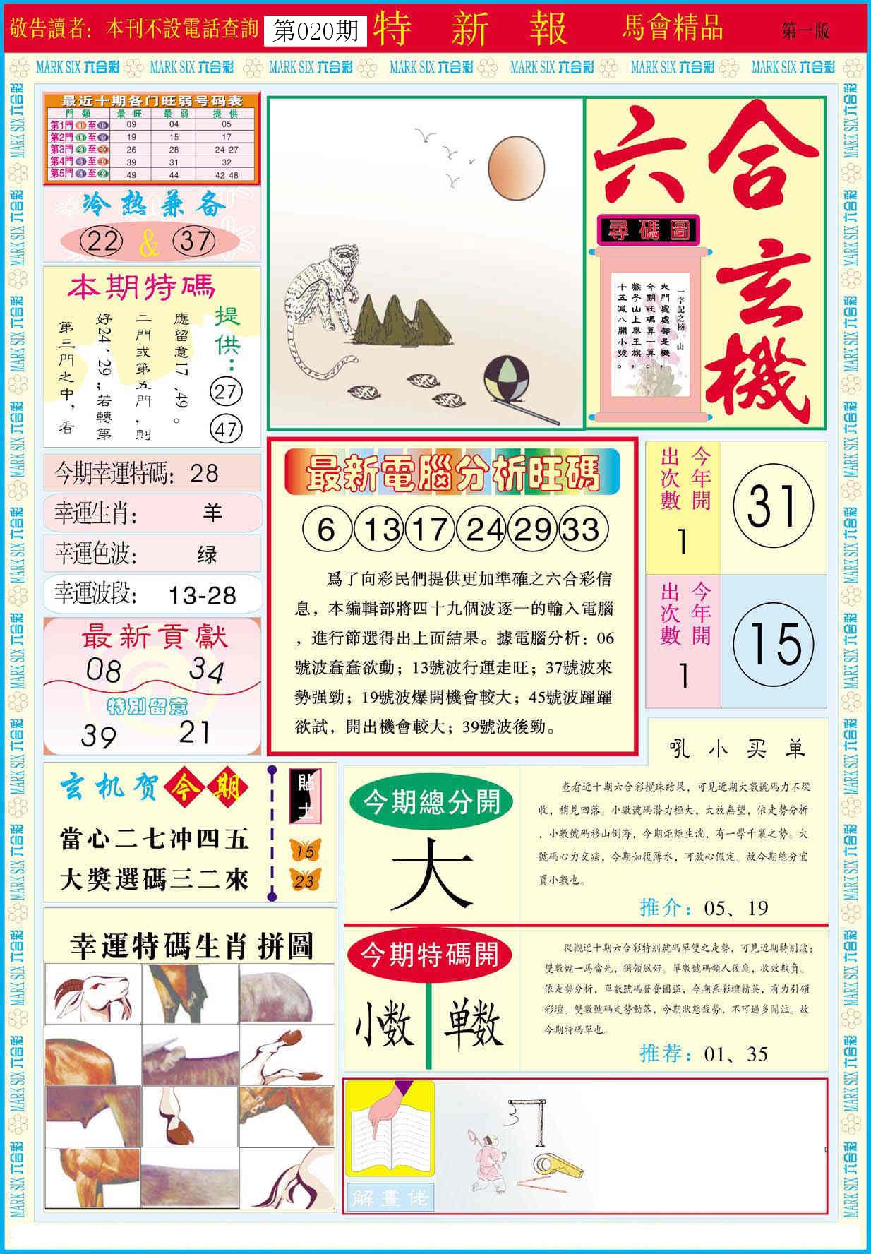 新香港六合彩 第 2026020 期 開獎結果