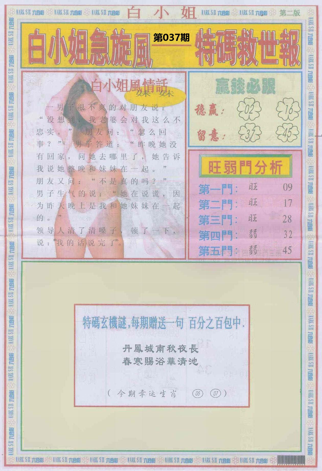 新香港六合彩 第 2026037 期 開獎結果