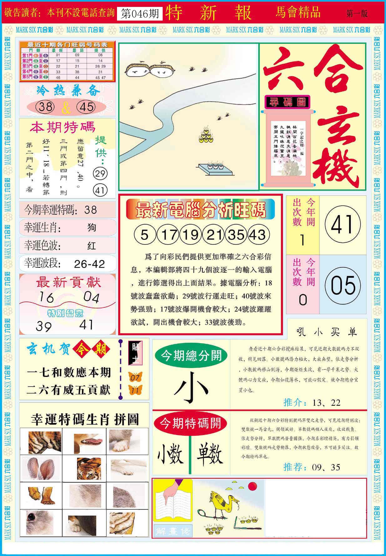 新香港六合彩 第 2026046 期 開獎結果