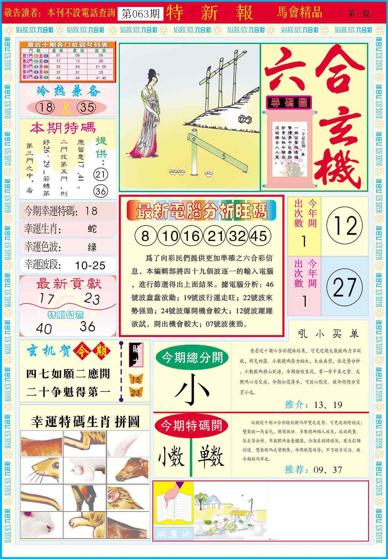 新香港六合彩 第 2026063 期 開獎結果
