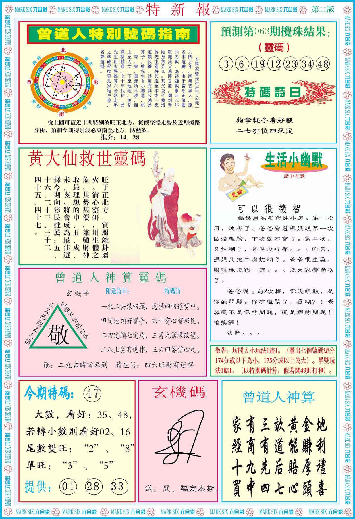 新香港六合彩 第 2026063 期 開獎結果