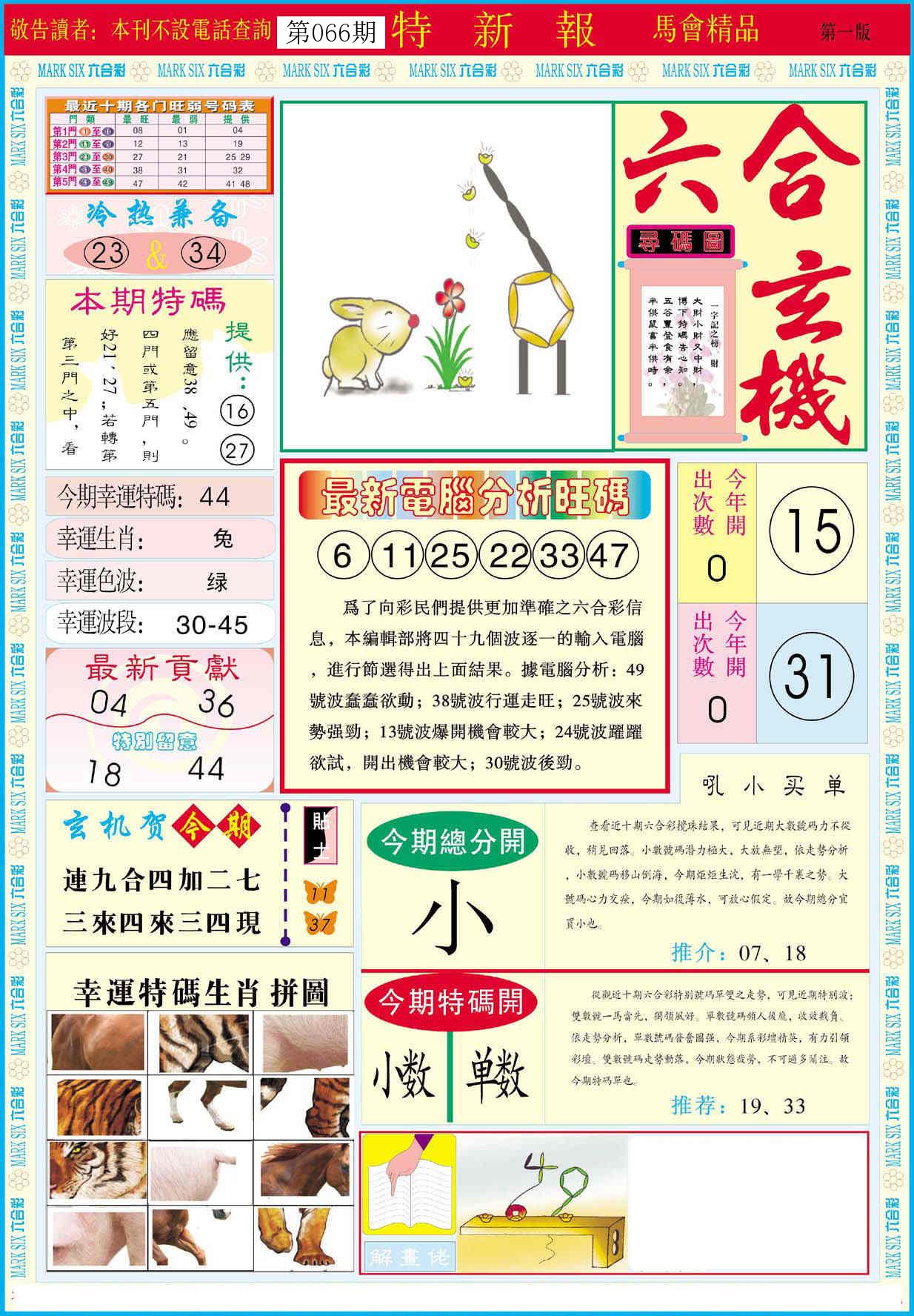 新香港六合彩 第 2026066 期 開獎結果