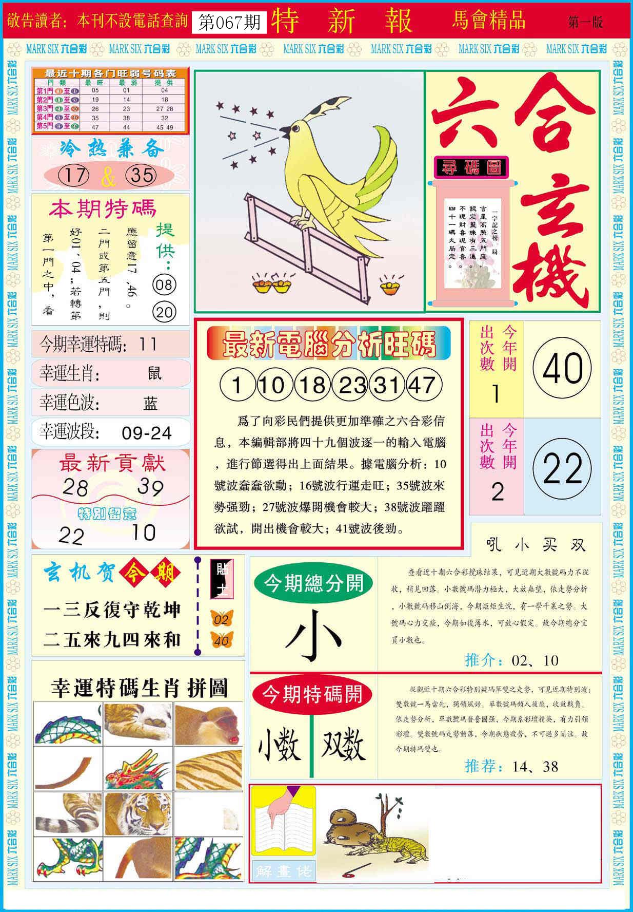 新香港六合彩 第 2026067 期 開獎結果