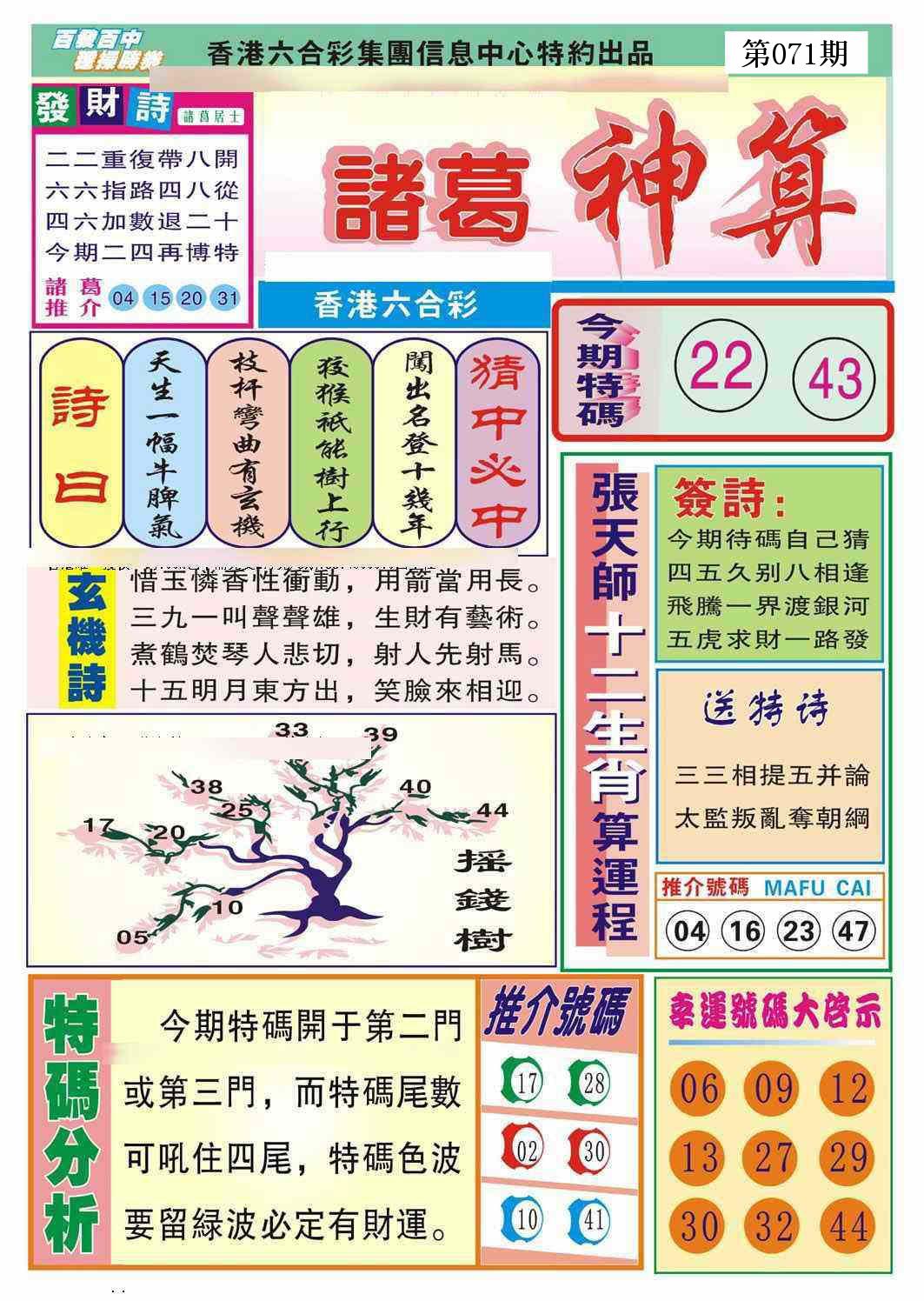 新香港六合彩 第 2026071 期 開獎結果
