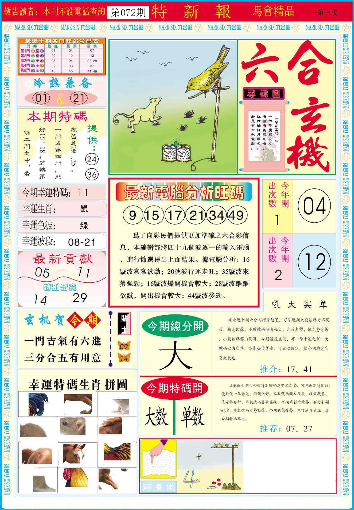 新香港六合彩 第 2026072 期 開獎結果