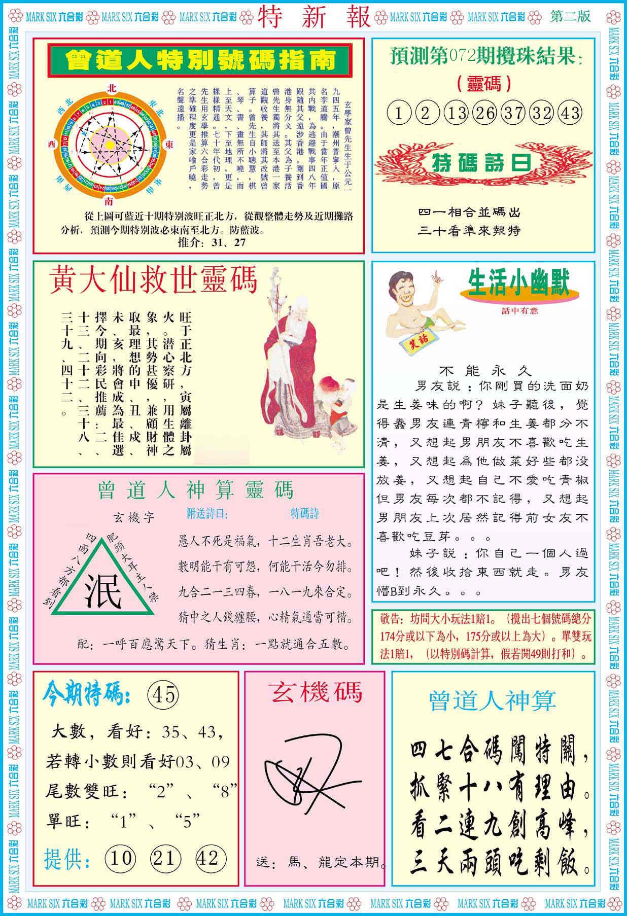 新香港六合彩 第 2026071 期 開獎結果