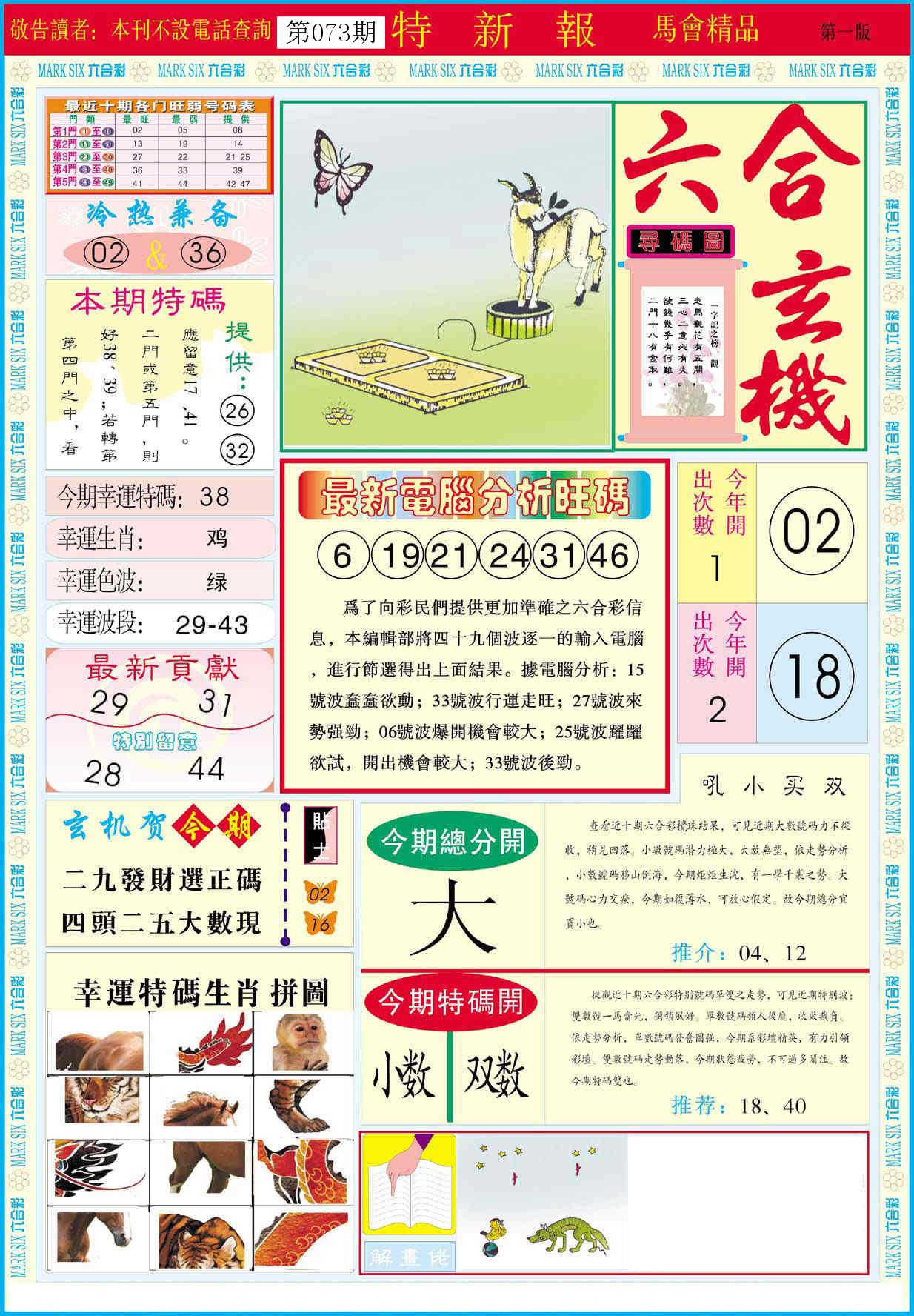 新香港六合彩 第 2026073 期 開獎結果