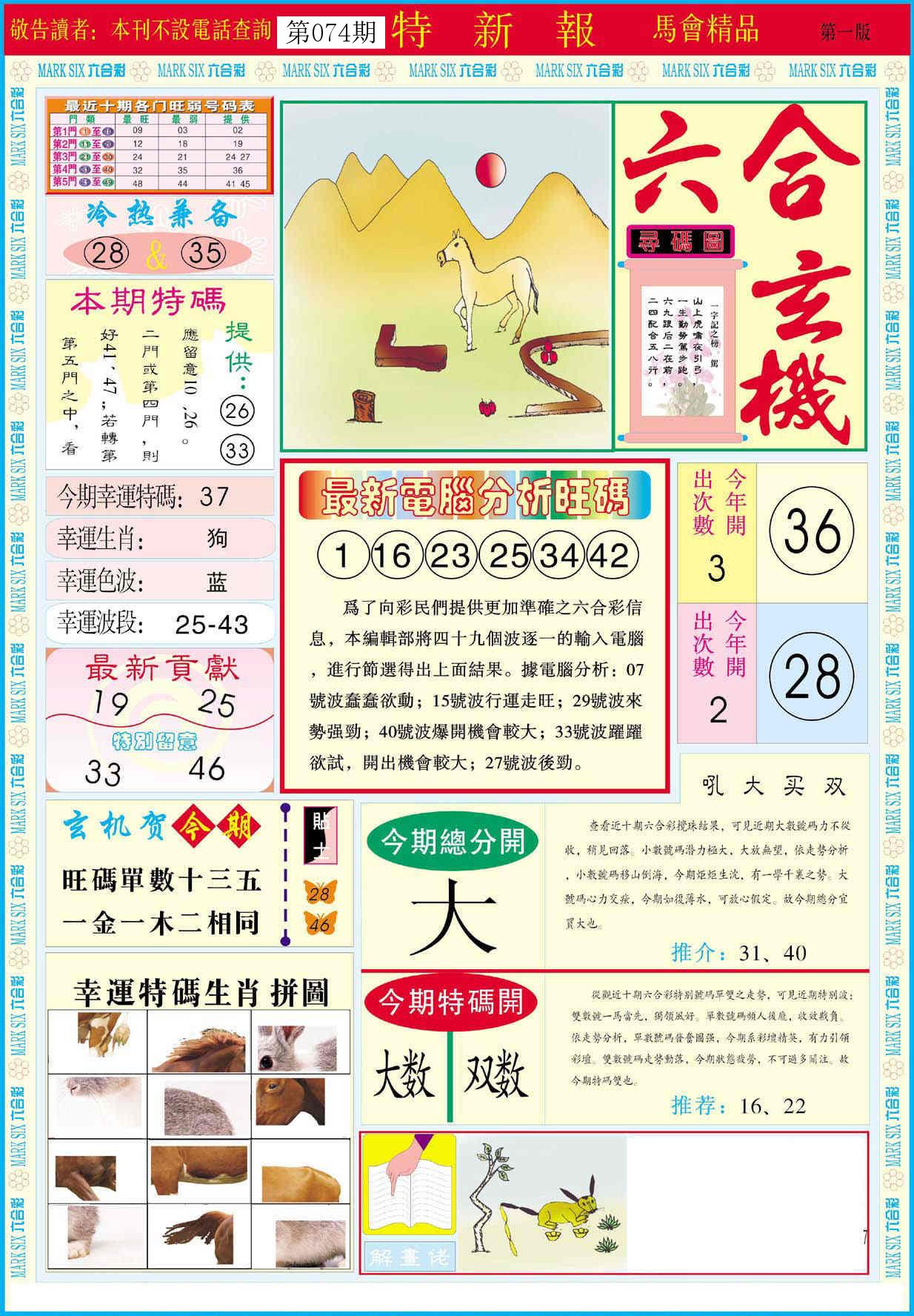 新香港六合彩 第 2026074 期 開獎結果
