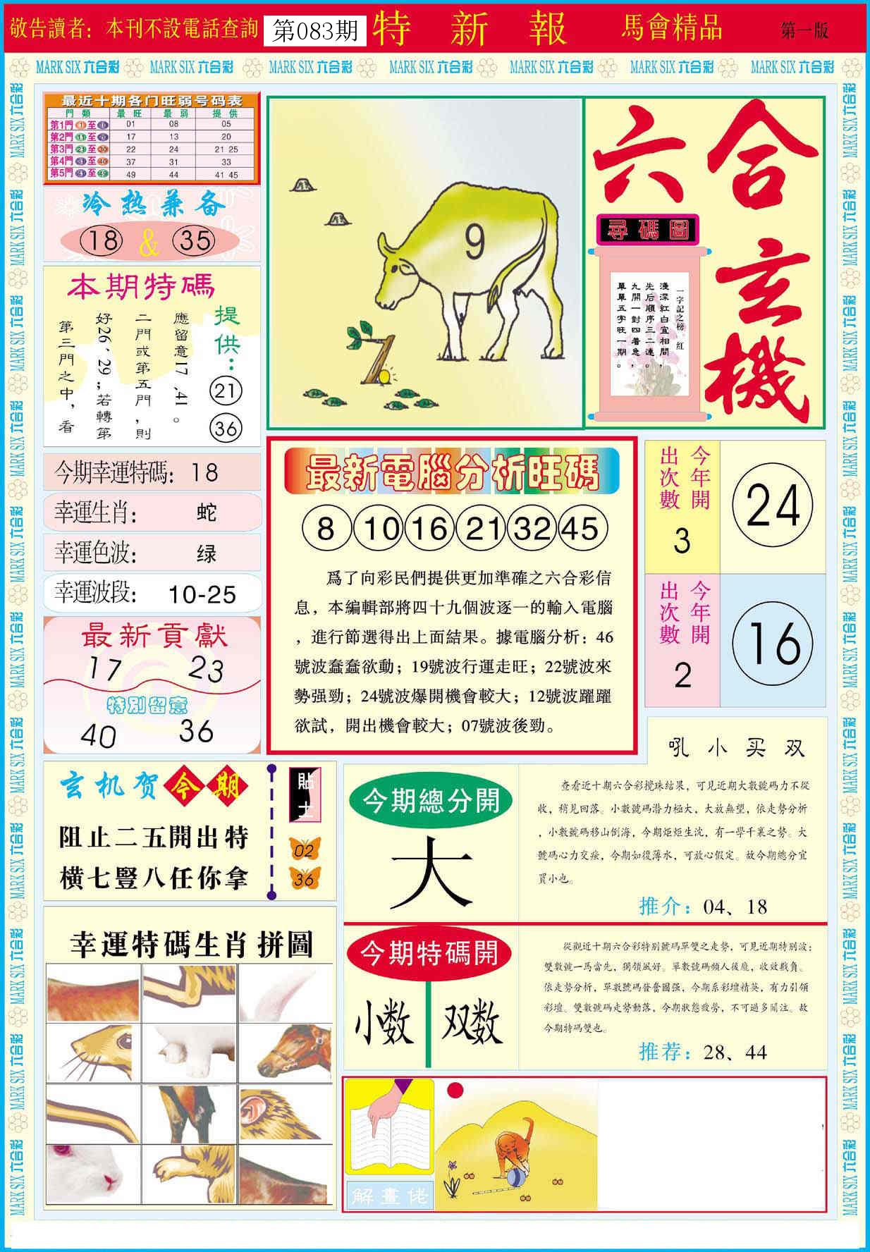 新香港六合彩 第 2026083 期 開獎結果