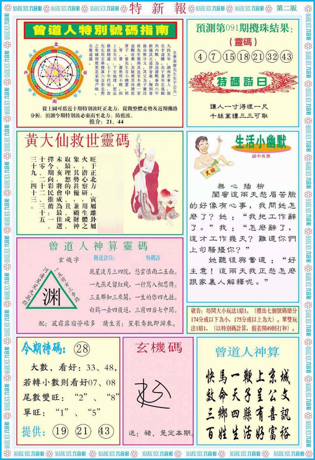 新香港六合彩 第 2026091 期 開獎結果