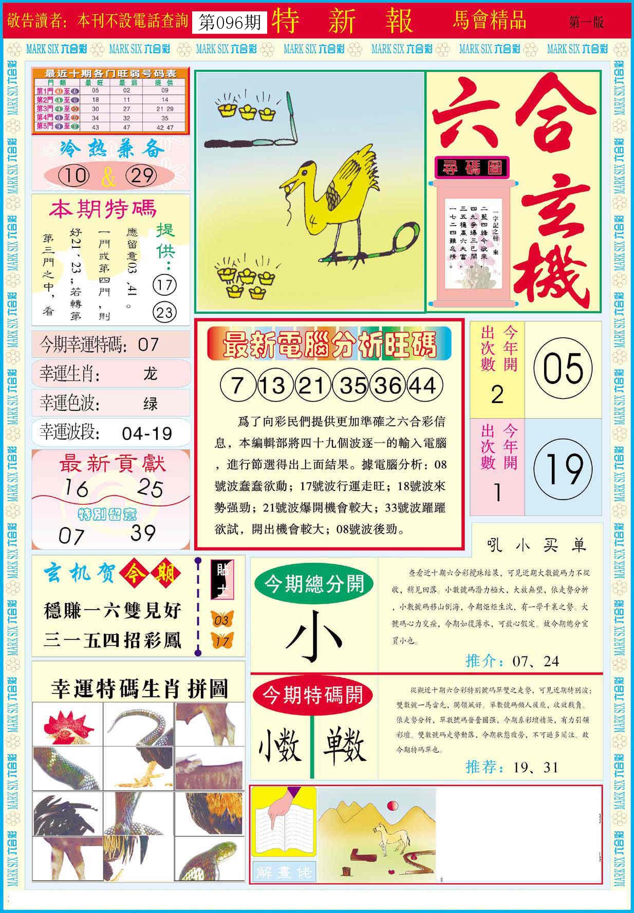 新香港六合彩 第 2026096 期 開獎結果