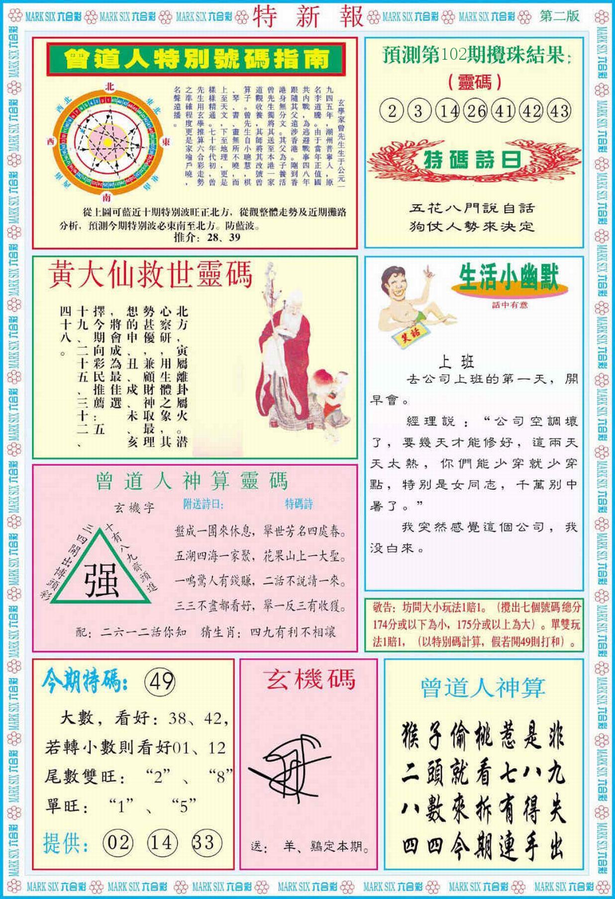 新香港六合彩 第 2026102 期 開獎結果